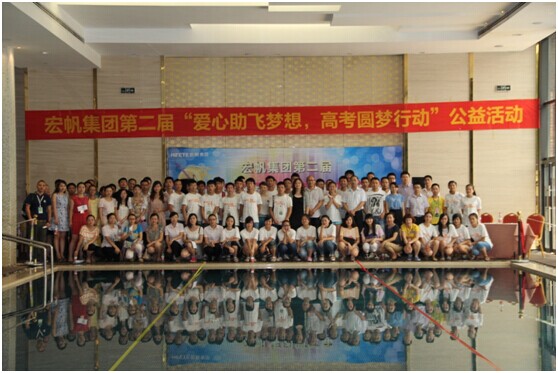 2014年7月31日,宏帆集團第二屆“愛心助飛夢想,高考圓夢行動”公益活動在鳳凰灣半山俱樂部舉行。宏帆集團副總裁王僉女士、宏帆集團工會主席趙航女士、重慶市綠葉義工志愿者協(xié)會總監(jiān)黃楊先生出席了此次活動,28名貧困高考生及宏帆集團員工代表參加了此次活動。