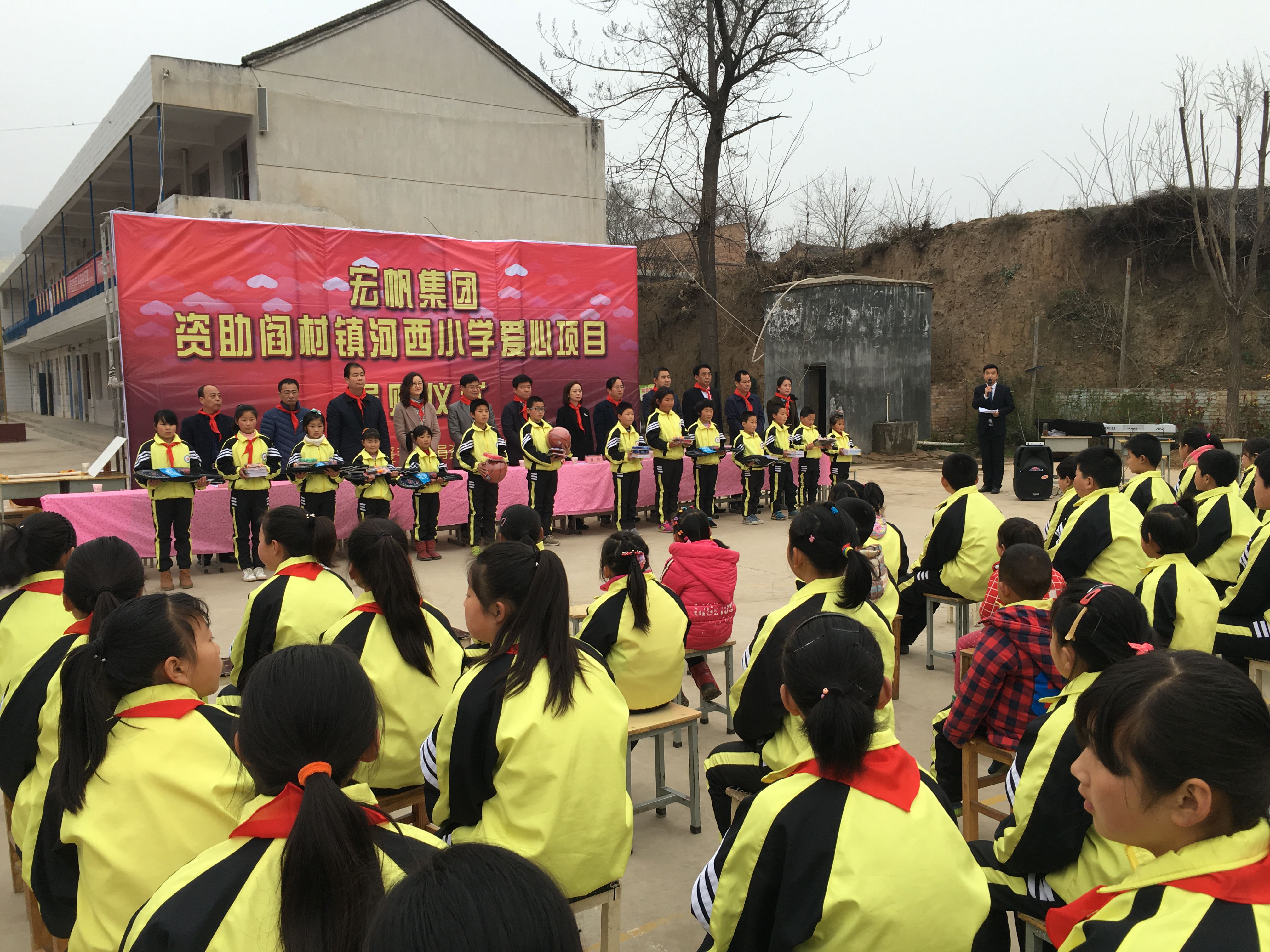 3月23日上午,伴著濃濃的關(guān)愛,“宏帆集團(tuán)愛心捐贈(zèng)活動(dòng)”在閻村鎮(zhèn)河西小學(xué)舉行。重慶宏帆集團(tuán)工會(huì)主席趙航、人力資源部副總經(jīng)理唐琳、渭南市宏帆房地產(chǎn)開發(fā)有限公司總經(jīng)理陳慶順等人帶領(lǐng)愛心團(tuán)隊(duì)參加了捐贈(zèng)活動(dòng)。