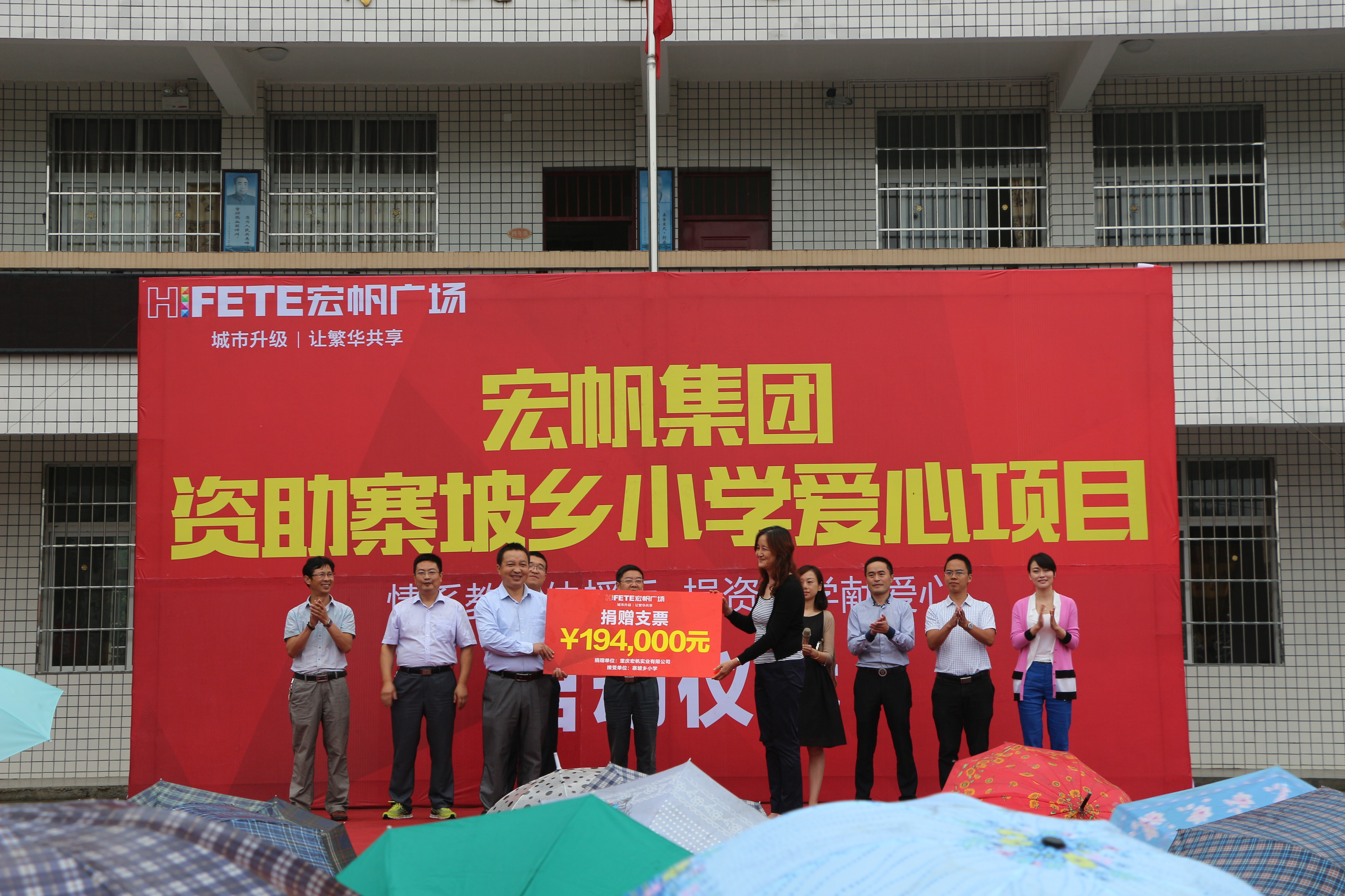 建100座宏帆廣場、資助100所貧困中小學(xué),是我們宏帆人不忘的初心。宏帆集團(tuán)在發(fā)展自身的同時(shí)積極履行著社會(huì)職責(zé),為困難的人們帶去生活的希望,也將公益慈善的精神感染給更多的人。2020年9月15日,宏帆集團(tuán)組織全體員工向四川省富順縣趙化鎮(zhèn)趙化中學(xué)獻(xiàn)愛心捐款活動(dòng)。