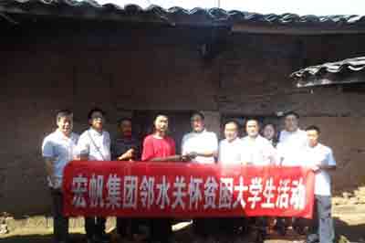 宏帆集團在不斷發(fā)展的同時,從未忘記回饋社會,一直以來將對社會的幫助也作為企業(yè)責任的一部分。在繼攜手綠葉義工組織資助巴中“夫妻”小學后,宏帆集團繼續(xù)傳遞正能量,捐助鄰水貧困大學生。